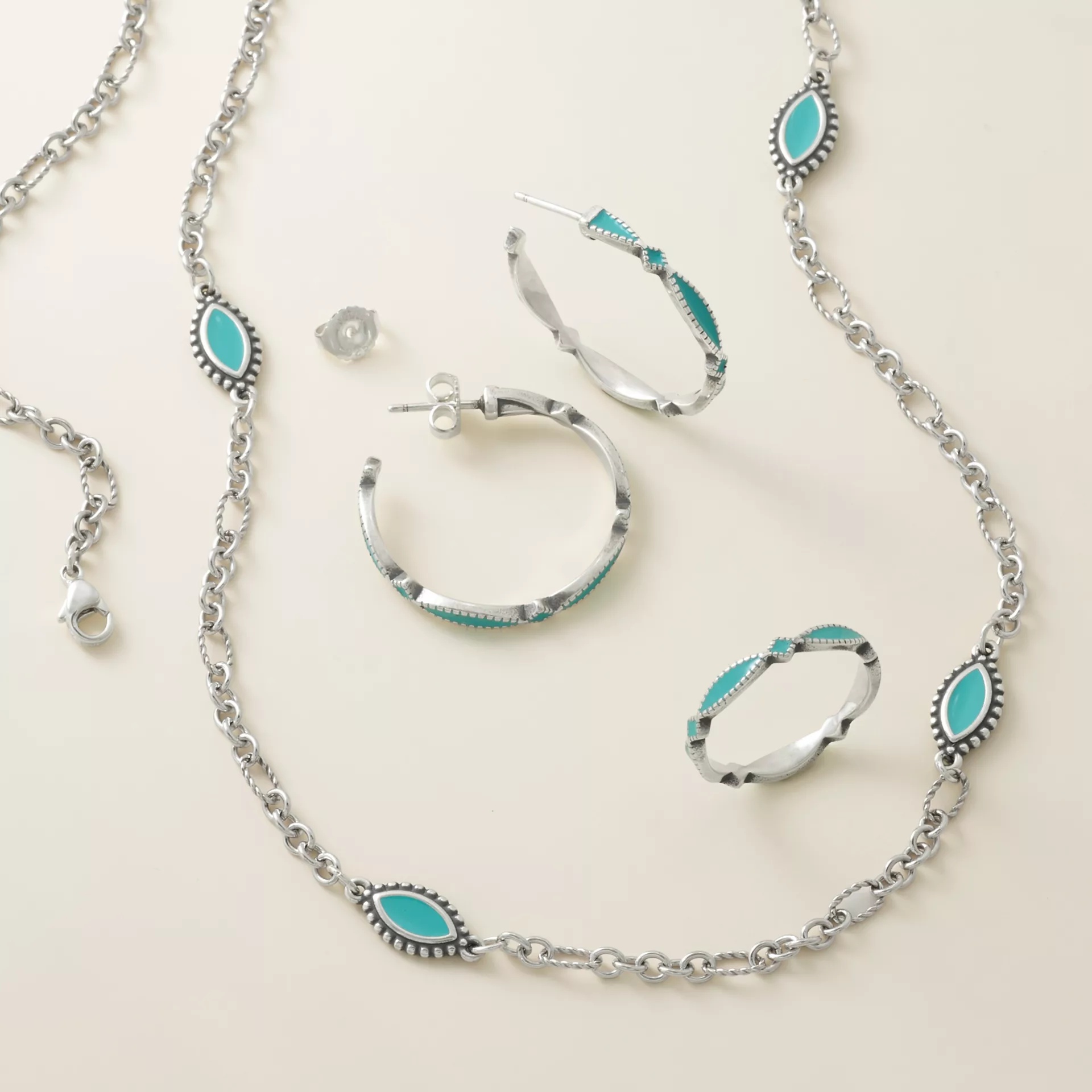 The Enamel Cordoba Hoops are a beautiful way to add a pop of color to any outfit. Inspired by the patterned mosaic tiles of Cordoba, Spain, our designers created these timeless enameled sterling silver hoops to be versatile enough to dress up jeans or to add flair to a little black dress. The colorful alternating long oval shape with the diamond shape reminds us of the arches in the Grand Mosque of Cordoba. These earShop All Rings are a vibrant piece in the Cordoba collection, matching back to the necklace and ring. The designs are available in seven stunning hues.